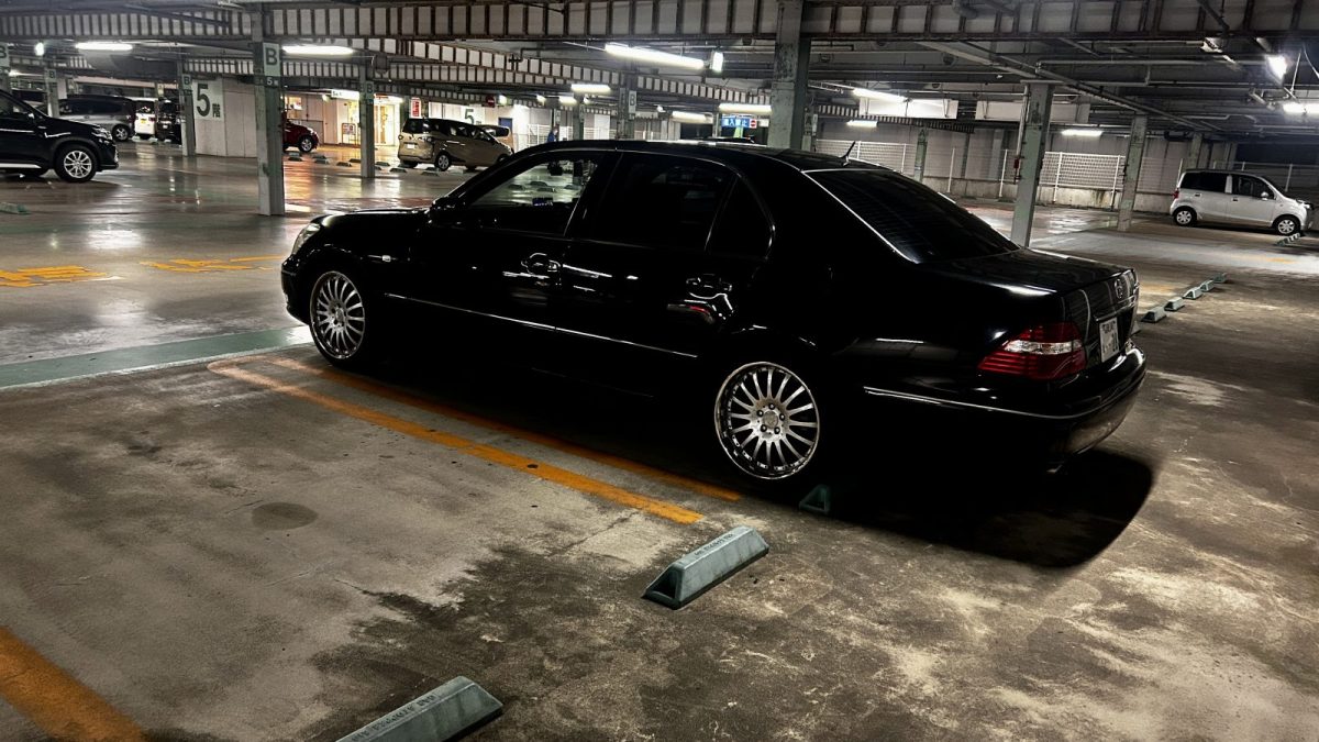 珍しいほぼノーマル、塗装なしのブラックです。セルシオの特徴としては全長が5m超えでデカすぎることと、V8エンジンを搭載したその余裕のある加速かと思います。