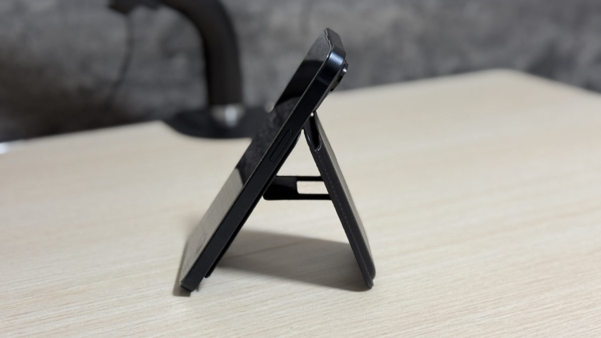 3CoinsのMagSafeでくっつけるウォレット。600円でカードが2枚ほど収納でき、質感も悪くない。