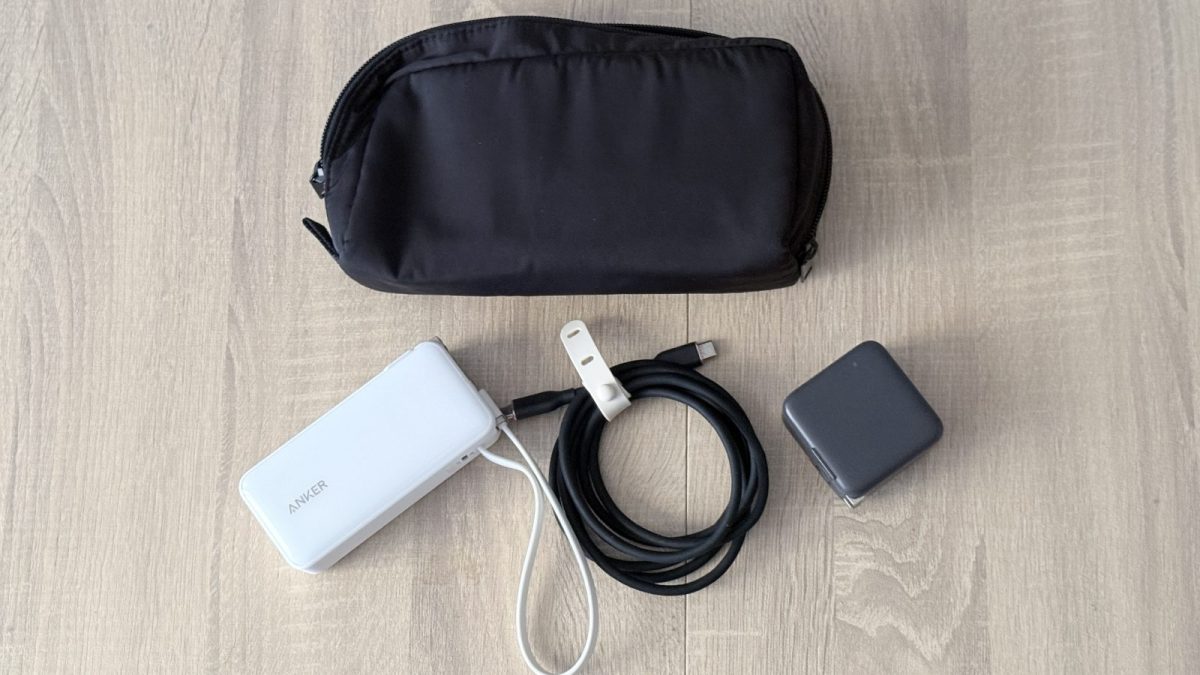 PCの充電はmotteruの63W充電器で、スマホ系はAnkerのモバイルバッテリーで充電。