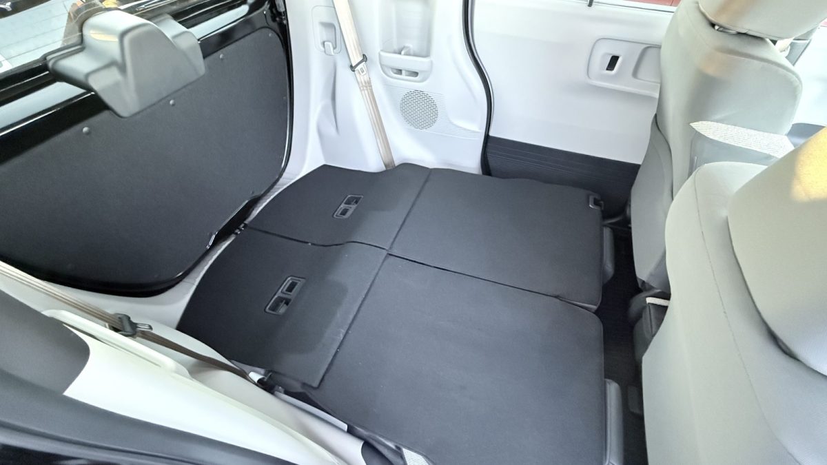 ホンダの車はセンタータンクレイアウトで、基本的にフラット気味になる車が多いのですが、N-BOXは傾斜が結構キツめ。自転車とかの大型荷物を積むだけなら大して問題ではないですが、完全にフラットにしたいなら段差を埋める必要があります。