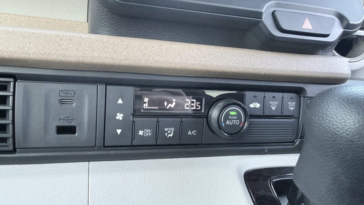エアコン周りはtype-cやtype-Aを装備しつつ、物理でわかりやすいエアコンパネル。温度は一括管理ですが、これで十分。